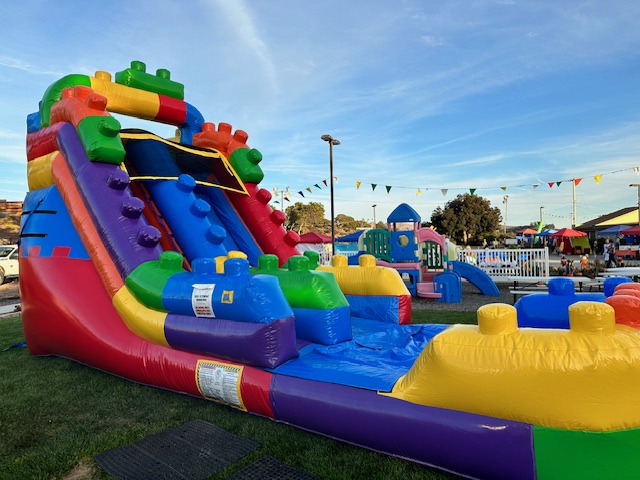 Dry slide or waterslide. No pool, just a slip n slide at the end.